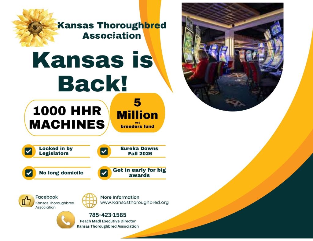 Special thanks to our Thoroughbred friends and owners, and of course to the Kansas Horse Council for all their counsel as we wrap up legislative needs to enjoy the reopening of Eureka Downs.